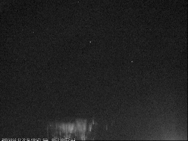 M20091016 033902 · First image of a sprite using my low light setup. This is a carrot sprite. This storm was about 250 miles to the northeast over the Atlantic. This sprite generated an early-fast ionospheric disturbance which I picked up with my SID receiver.
